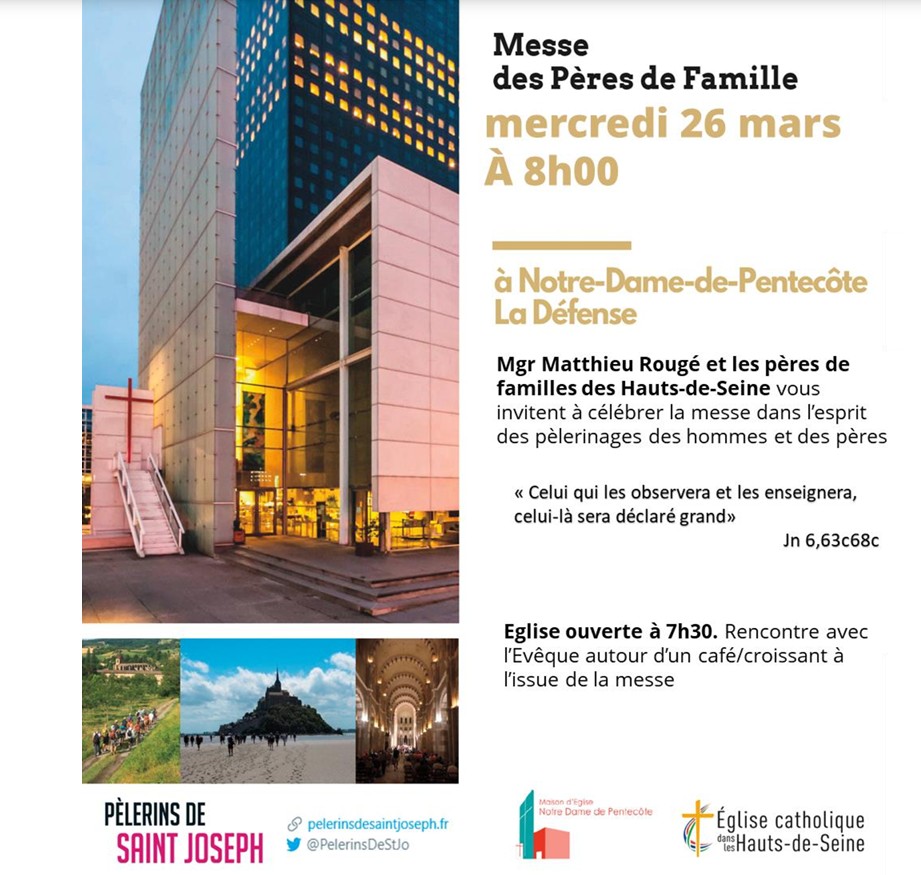 Mgr Rougé et les pères de famille des Hauts-de-Seine vous invitent à célébrer la messe dans l’esprit des pèlerinages des hommes et des pères
