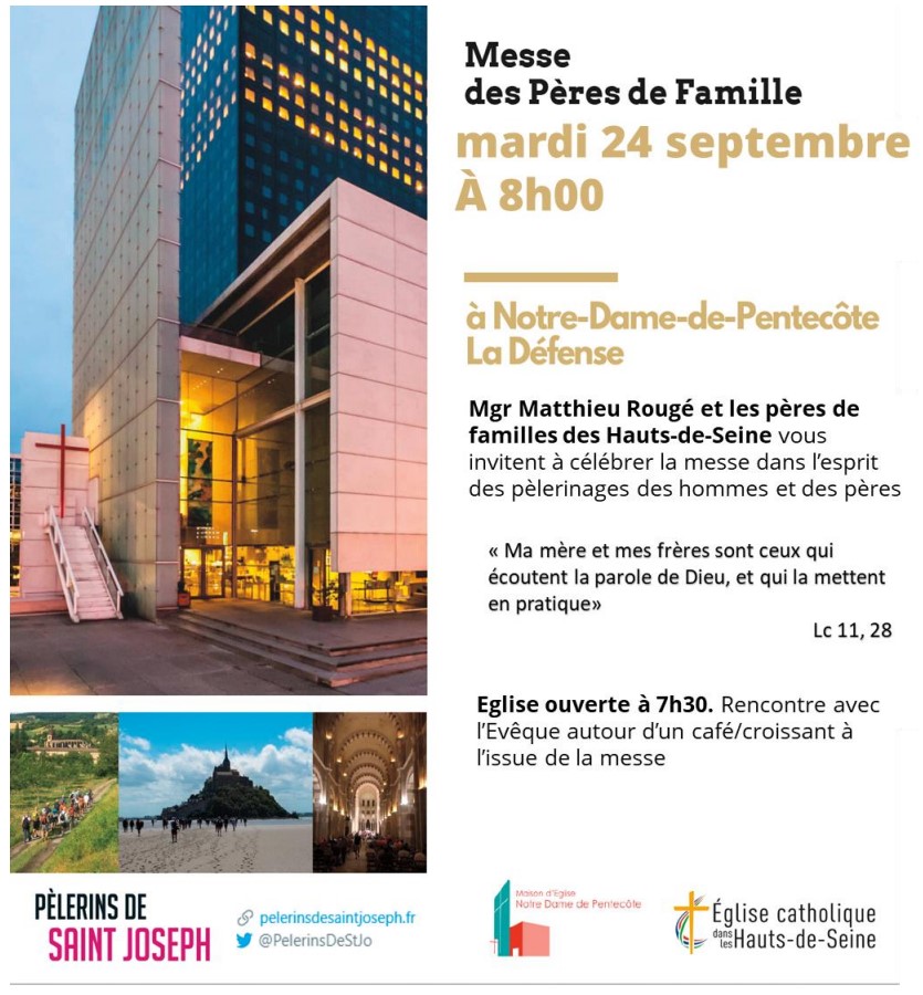 Mgr Matthieu Rougé et les pères de famille des Hauts-de-Seine vous invitent à célébrer la messe dans l’esprit des pèlerinages des hommes et des pères.