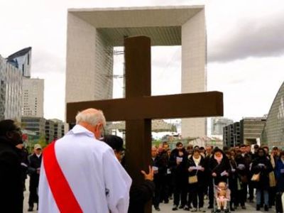 VENDREDI SAINT 3 AVRIL à 12h15 CHEMIN DE CROIX SUR LA DALLE DE LA DEFENSE présidé par Mgr Hugues de Woillemont, directe…